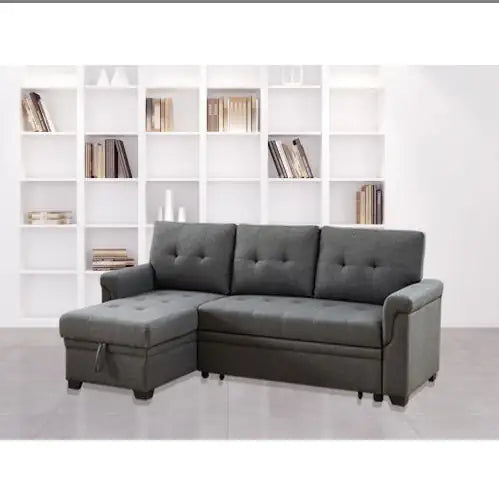 Dark Gray Linen Reversible Sleeper Sectional Sofa With Storage Chaise